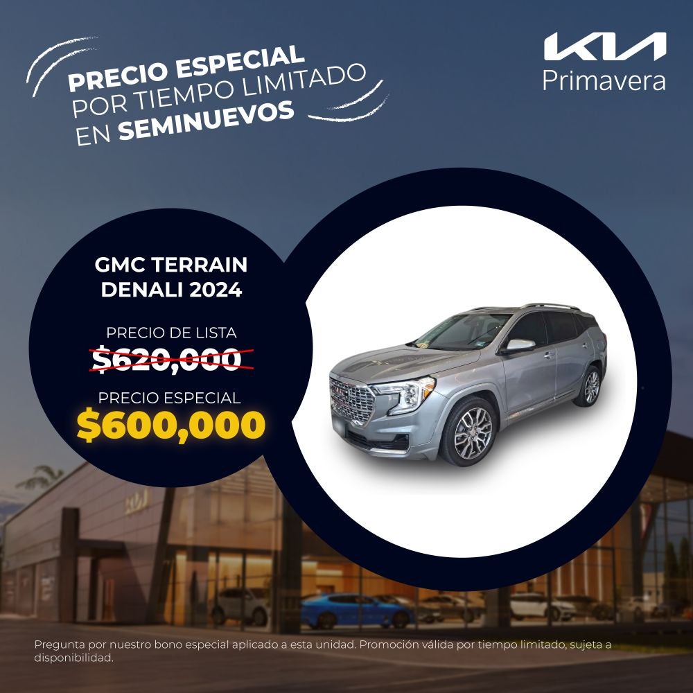 El precio mostrado ya incluye el bono aplicado. Válido únicamente para GMC Terrain Denali modelo 2024 seminuevo.